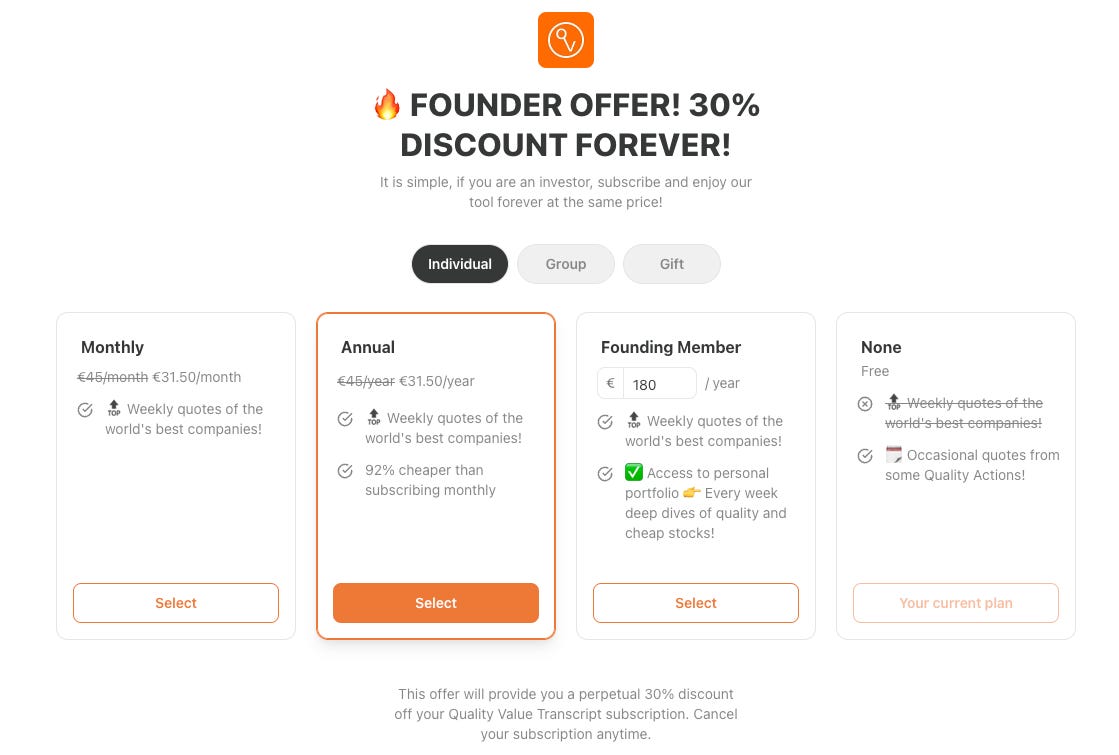 If you would like to access the 3 tracking portfolios, receive stock valuation templates or deep dives on quality companies, join the quality Value community!
